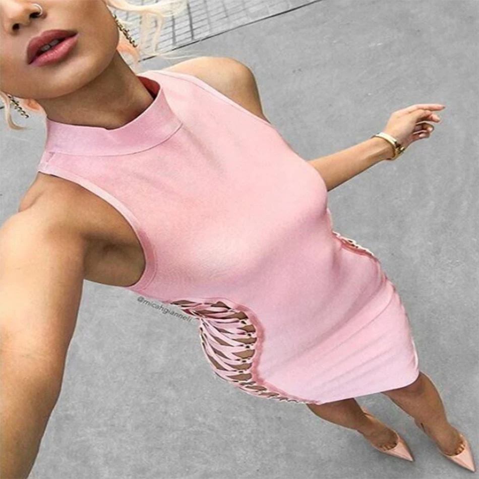 2020 New Spring Bandage Dress Women Celebrity Party Sleeveless Hollow Out Chic Sexy Night Out Club