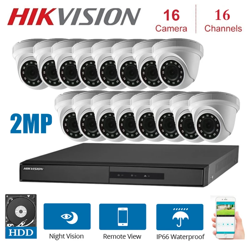 Hikvision 16 Pieces 2MP 4 in 1 HD Indoor Night Vision Camera with 16 Channel Surveillance Network D