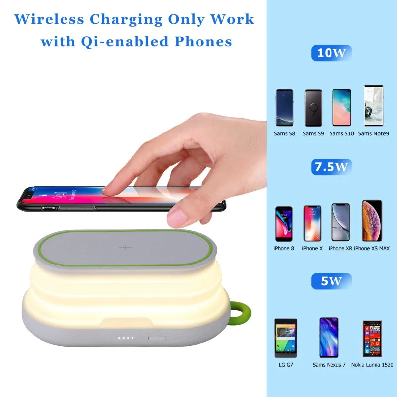Hot Portable Wireless Charger 5000mAh Wireless Power Bank Foldable Phone Holde Charger Mini LED Nig