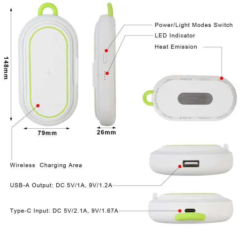 TOP Hot Portable Wireless Charger 5000mAh Wireless Power Bank Foldable Phone Holde Charger Mini LED Nig