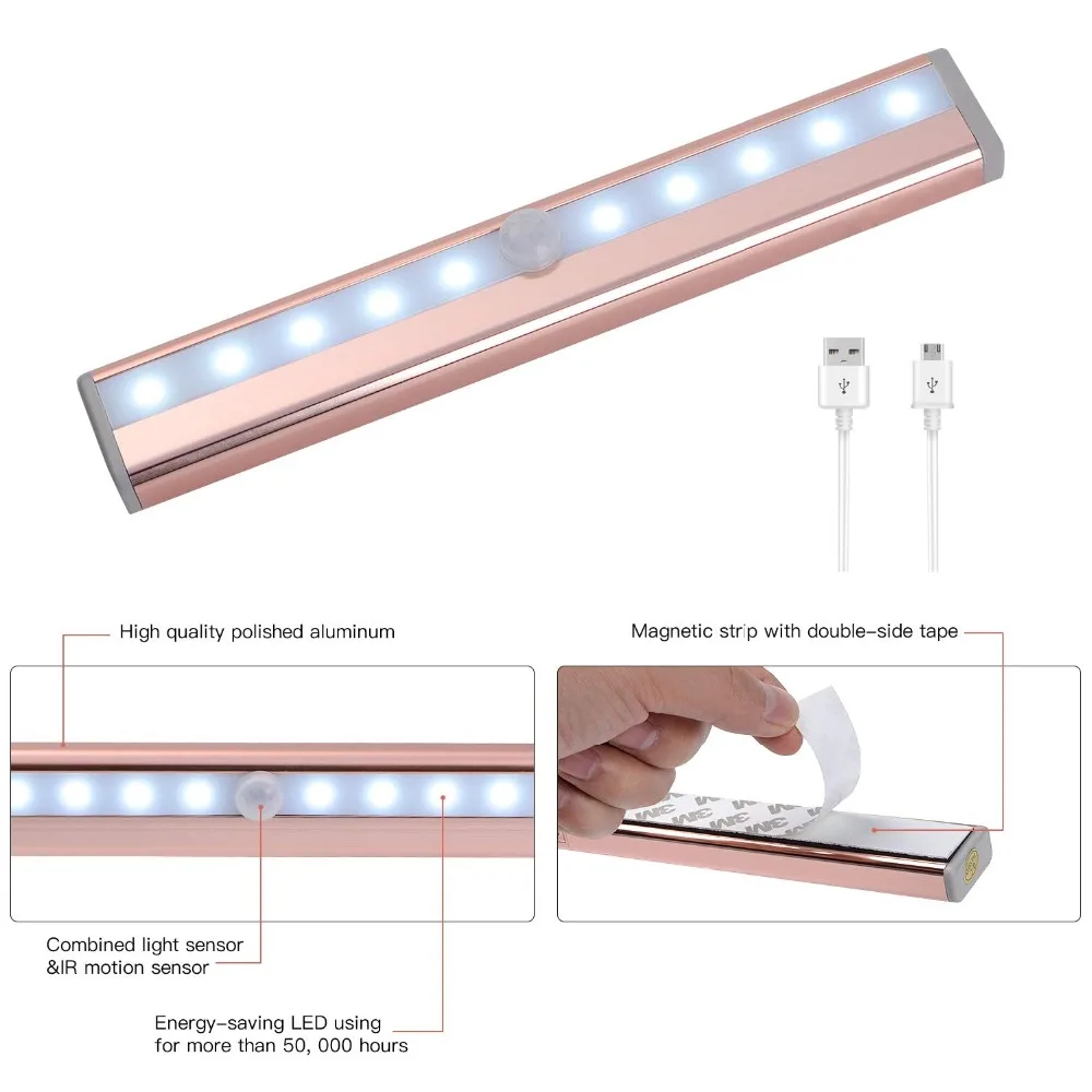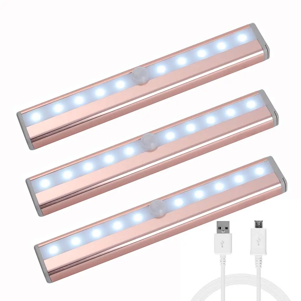 HIGH QUALITY Motion Sensor Closet Light Rechargable 10 LED Under Cabinet Lighting Bar Removable Magnetic Strip N