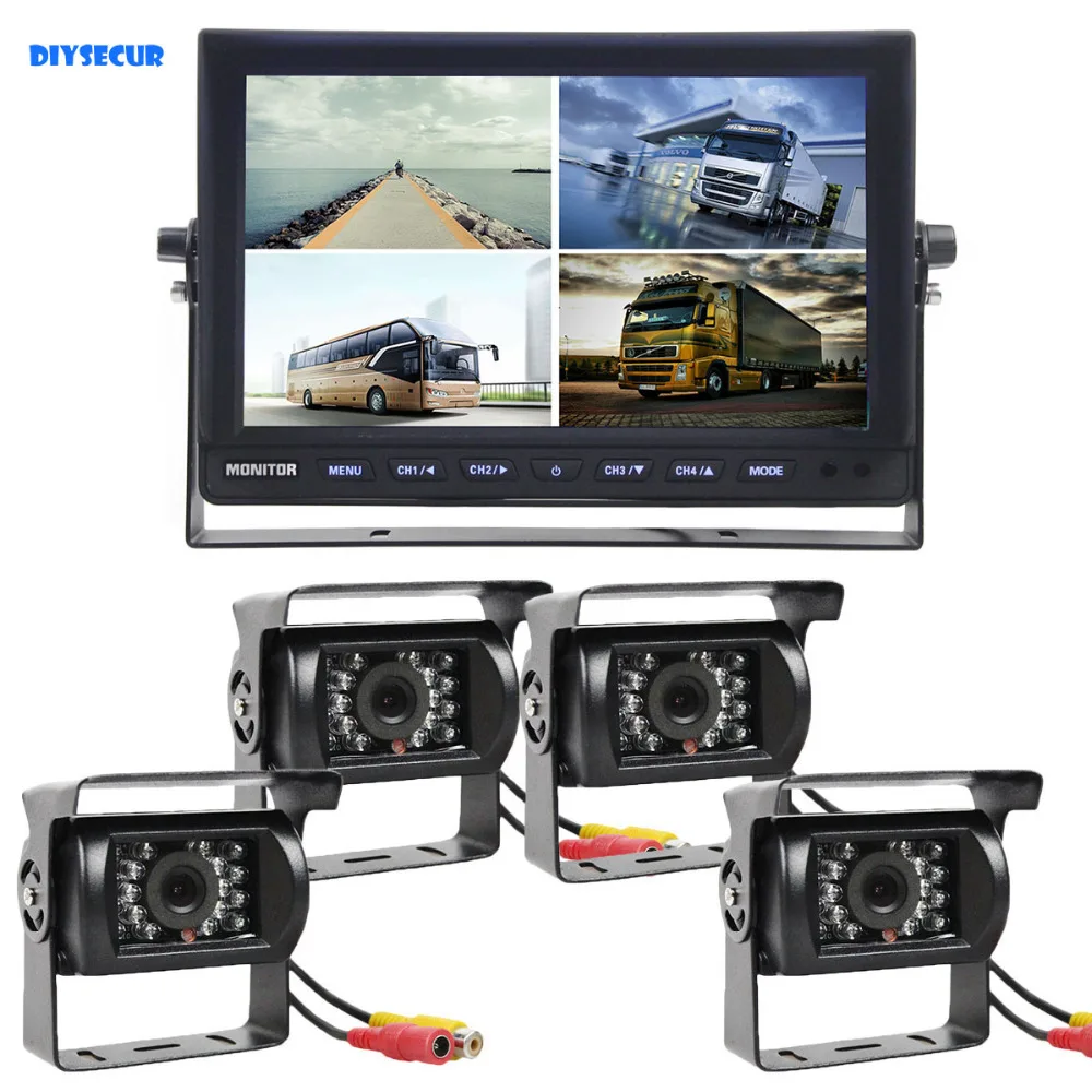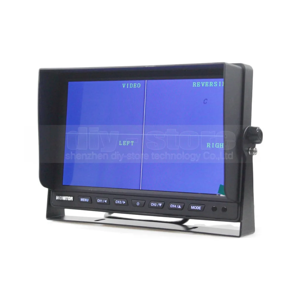 Best Quality DIYSECUR 10 Inch Split Quad Display Monitor 1080 x 600 + 4 x CCD IR Night Vision Rear View Camera W